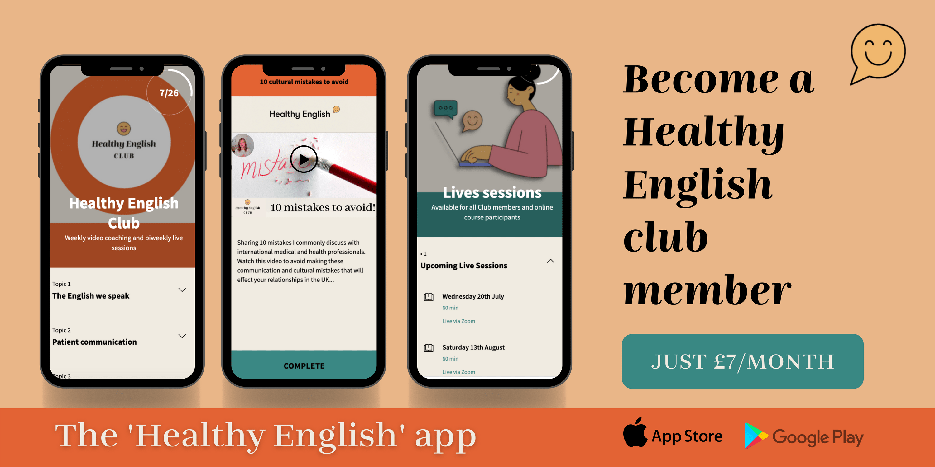 • Understand key colloquialisms, idioms and slang used by UK patients and colleagues.